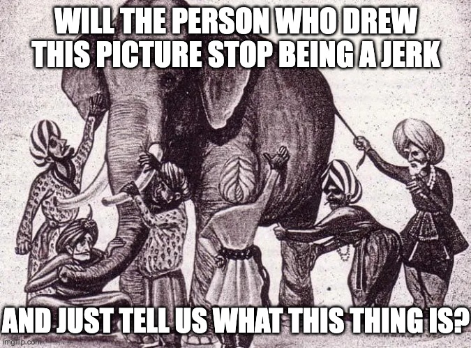 There is old Indian tale of blind men who stumble upon an elephant. You have heard it. Here is a version I ripped off the web.