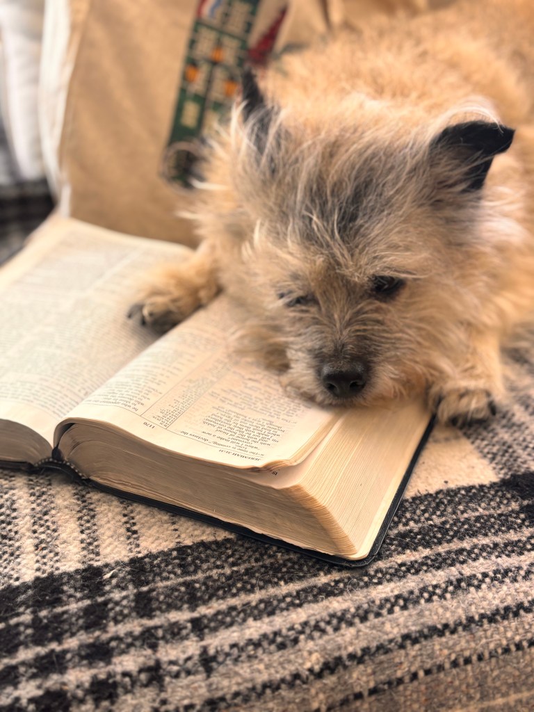 My wife found my dog resting his adorable snout on the Bible, sniffing Jeremiah 31:31, where the prophet foretells the New Covenant between God and His people.